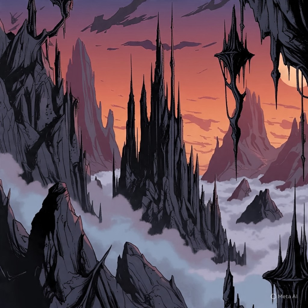 In the foreboding Abyssal Spire, darkness reigned supreme. Towers of black stone pierced the sky like splintered bones, casting long shadows that seemed to twist and writhe like living darkness.
