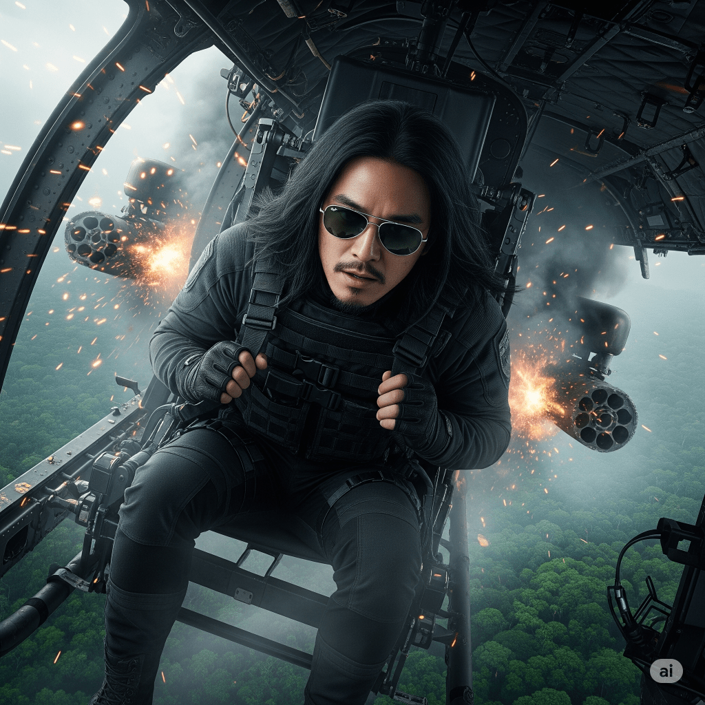 SeventhSight grasped the seat tightly as the helicopter plummeted towards the jungle. Leni yelled above the chaos, “Mayday, Mayday! Engine failure!”
