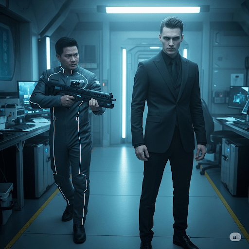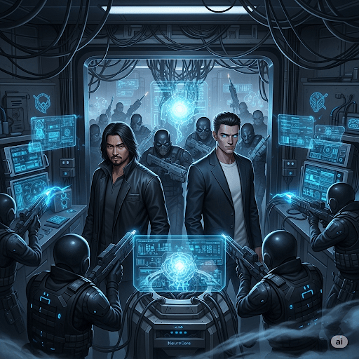 “They didn’t fail – Malakar has someone with NeuroCore admin access…” SeventhSight’s eyes narrow – “Who has that kind of clearance?!” Erebus’ expression turns grim – “Only people I trusted with my life… and two are missing since Malakar’s return: Dr. Elara Vex – my lead researcher, and Dr. Arin Castillo – my own nephew.”