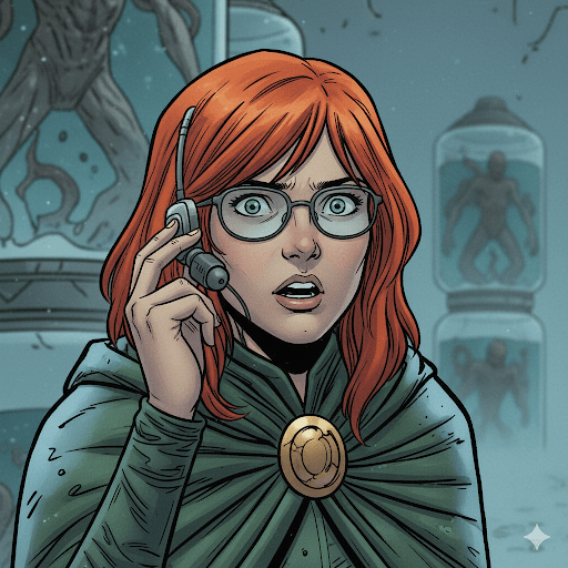 SeventhSight grasped Dr. Vex’s arm firmly. “Talk. What’s the Order’s plan?” Dr. Vex sneered, but fear flickered in her eyes. “Malakar…was to capture Erebus, use his tech to channel Oblivion’s energy into our world…summoning the Devourer. With Erebus as their pawn, the Order controls the Devourer.” Ereia gasped. SeventhSight’s grip tightened. “Where’s the channeling device?” Dr. Vex spat at Erebus. “Your own Omicron Innovations…Elias’ old lab. Malakar’s men are activating it now.”