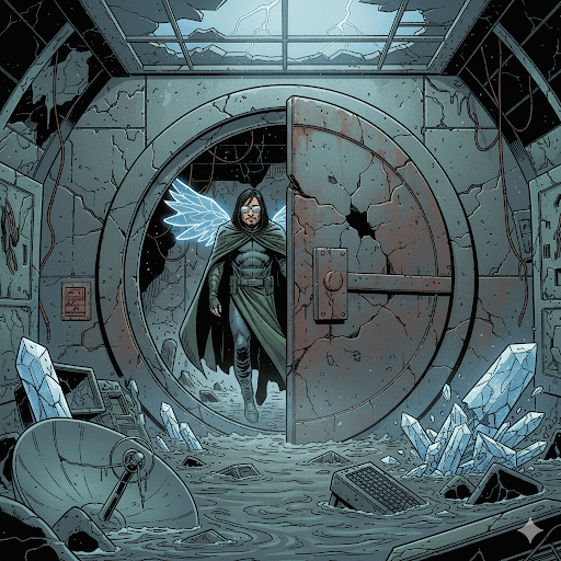 Erebus turned, his fist connecting with her jaw. Dr. Vex crumpled, unconscious. Outside the lab, SeventhSight and Ereia waited. SeventhSight asked, “Can we stop the device remotely?” Erebus shook his head. “My father built safeguards. We must be physically present…to destroy it, or use it.”