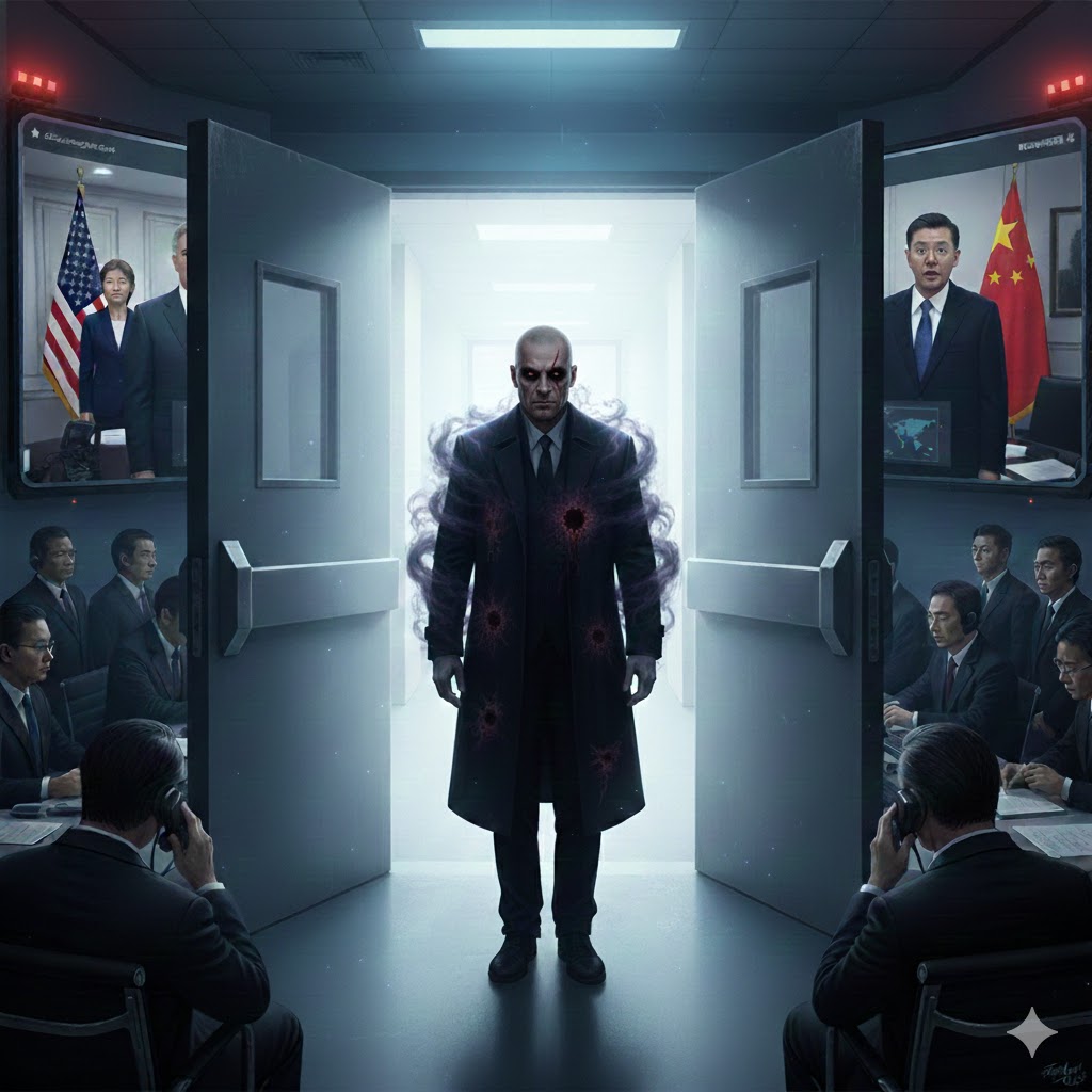 The conference room was filled with Chinese officials, all speaking frantically on their phones. The US president appeared on the screen, with his advisors beside him. The Chinese president, Zhou, entered the room, nodding to his officials. Dr. Li whispered to SeventhSight, “He wants to know what happened. What do you tell him?”