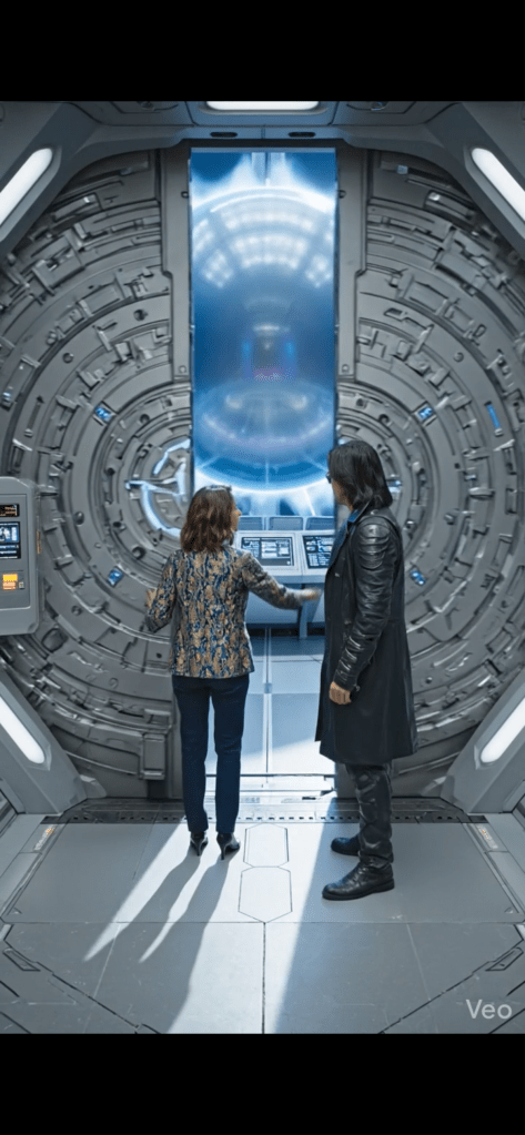 They arrived at the Chronosphere chamber doors. Aria turned to SeventhSight, “I have to check the Chronosphere now. Will you wait here or head back to the UN?”
